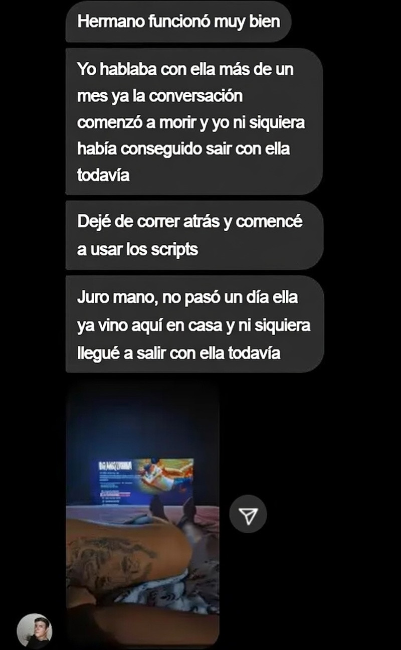 Essas mensagens seguem uma estrutura criada pra inverter o fluxo da validação e ativar picos de dopamina — o mesmo neurotransmissor do prazer e da recompensa.