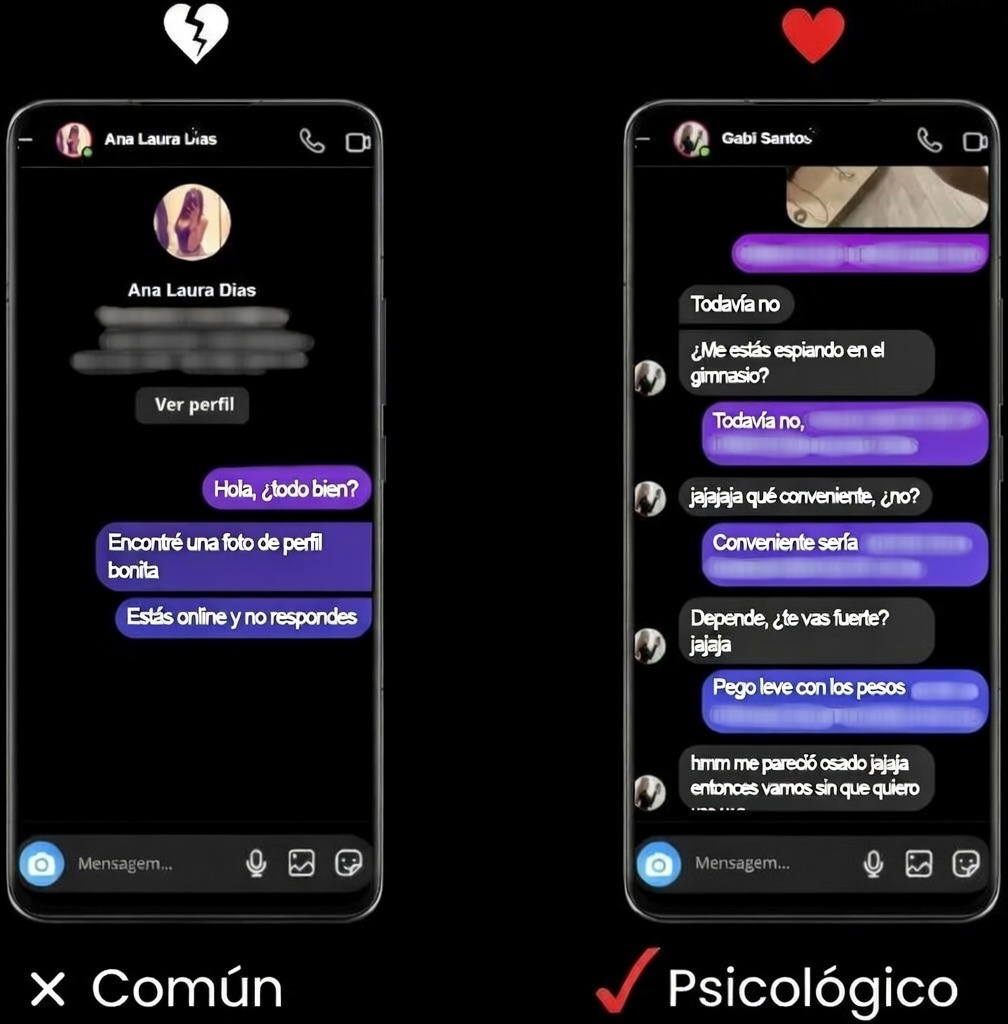 Essas mensagens seguem uma sequência que inverte o fluxo da validação e ativa picos de dopamina no cérebro feminino.