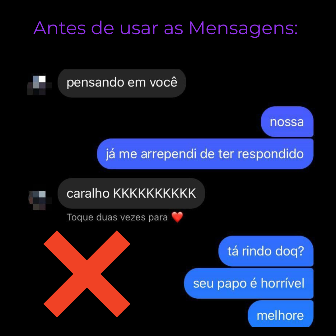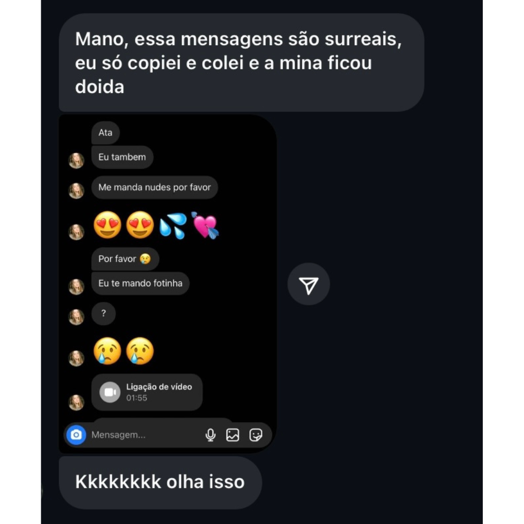 Depois que comecei a usar as mensagens proibidas, nunca mais fiquei no vácuo. Parece que elas ficam esperando o que eu vou mandar.